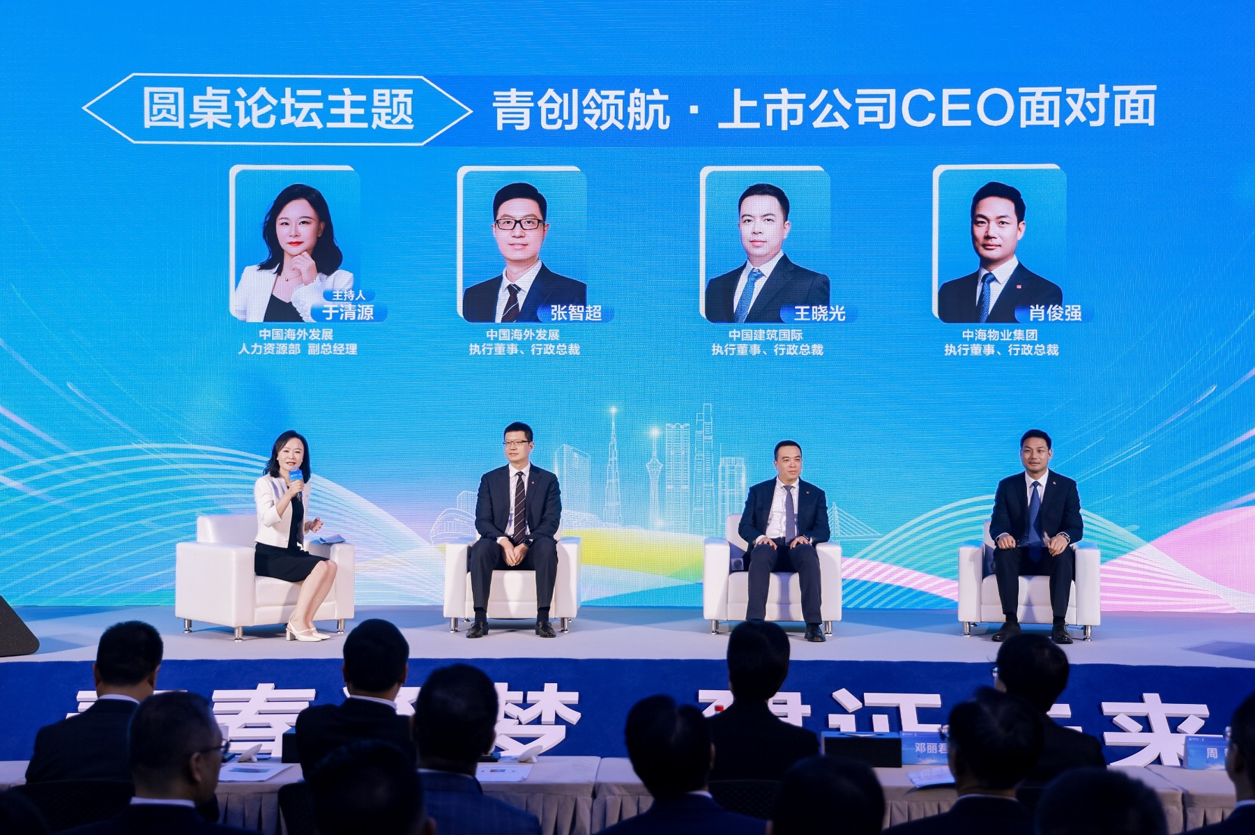 智慧激蕩,共話青春擔當!作為本次論壇的重要組成部分,“青創領航·上市公司CEO麵對麵”圓桌論壇同期舉行。論壇聚焦“培育中海青年創新創業文化、用心用情服務中海青年成長成才”主題,特邀中國海外發展執行董事、行政總裁張智超,中國建築國際執行董事、行政總裁王曉光,中海物業集團執行董事、行政總裁肖俊強擔任對話嘉賓,與主持人中國海外發展人力資源部副總經理於清源一起,圍繞青年人才培養、創新生態構建、職業發展支援等議題展開深度對話。