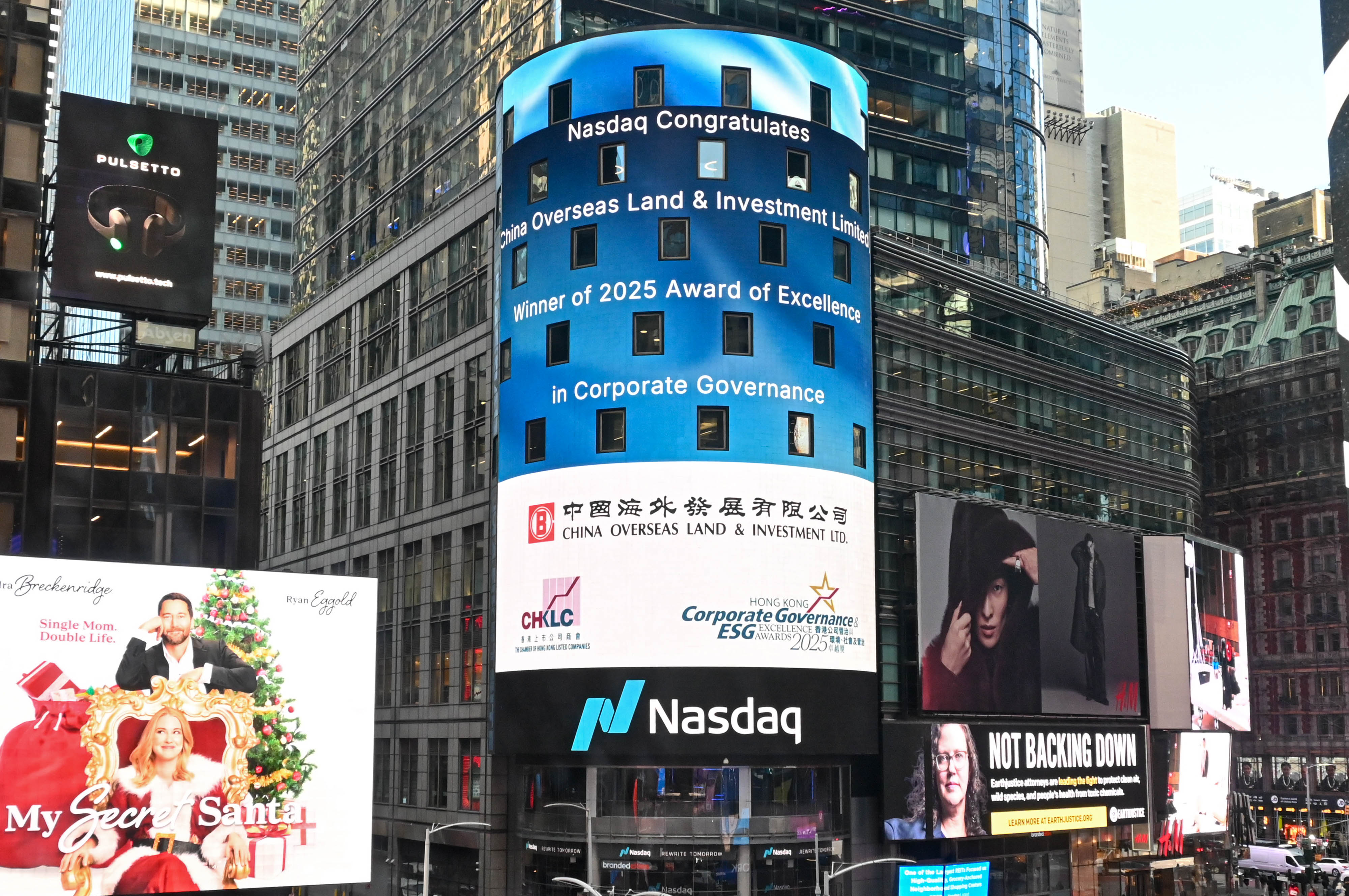 (公司榮譽獲美國紐約納斯達克交易所戶外廣告板展示)