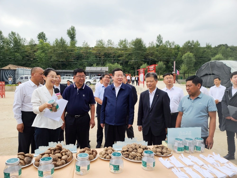 調研領導一行參觀了“康樂香菇”產品展示,瞭解了中海集團“海惠萬家”精準扶貧模式,以及打造“康樂香菇”農產品品牌、促進產品行銷的模式。