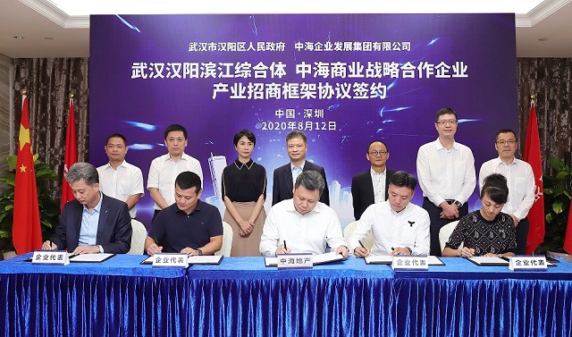 會談結束後,雙方領導共同見證了中海漢陽濱江商務區擬引進企業及商家的簽約儀式。