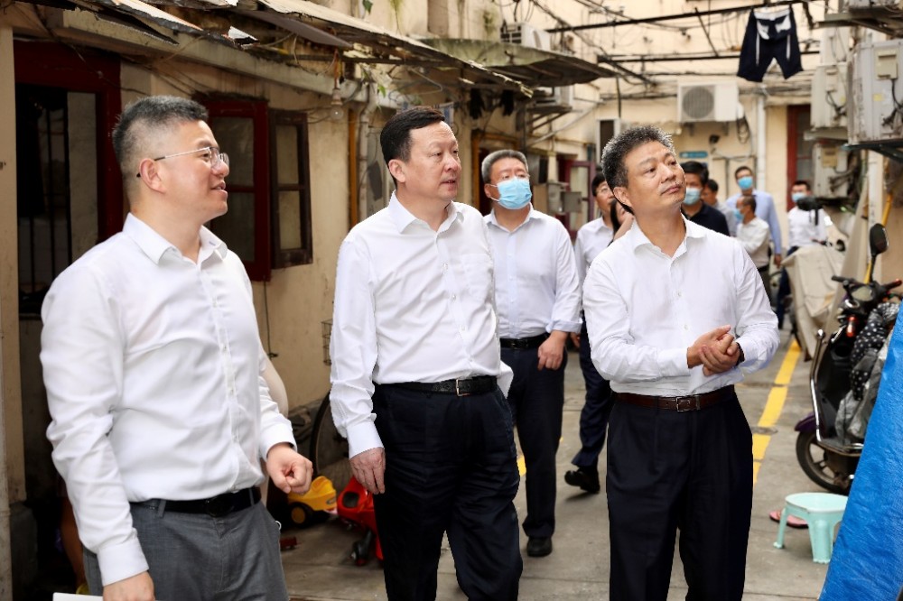 顏董陪同周乃翔董事長、鄭學選總經理視察舊改項目