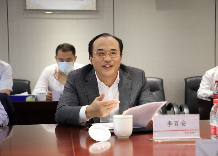 顏建國董事長對李百安副總經理一行的到來表示熱烈歡迎,並介紹了中海集團近年來的經營發展情況。顏董表示:中國建築、中海集團與招商局、招商蛇口長期以來保持著良好合作關係,有著成功合作的案例。希望雙方進一步加深共識、深化合作,發揮各自優勢,實現互利共贏。