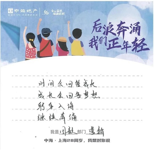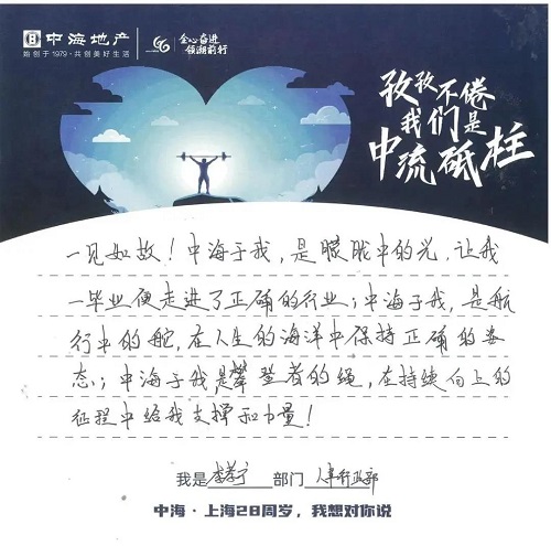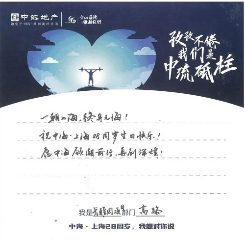 上海中海的全體小夥伴親筆寫下對中海的生日祝福,記錄和分享自己的中海故事。