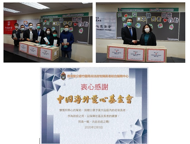 2月5日,4000個口罩已派發到香港橫頭勘邨,將幫助1000位長者抵抗疫情。“感謝中國海外愛心基金會慷慨和熱心幫助,捐贈口罩予黃大仙區內的老弱長者,保障社區及長者健康。”接收口罩的香港聖公會旗下長者綜合服務中心向中海表達感謝。
