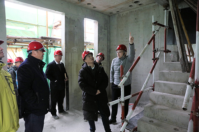 在中海望京府項目,顏總認真檢查了臨邊防護措施、結構施工的安全管理情況,並詳細詢問了項目負責人有關建設單位與總包簽訂合約、總包單位資質、建設單位安全監管、工人安全防護用品質量等情況。中海地產北京公司負責人彙報了項目有關情況,潘總通報了安全檢查中發現的問題,並要求項目從設計、合約、資金、監督四個方麵履行好建設單位的安全管理責任。