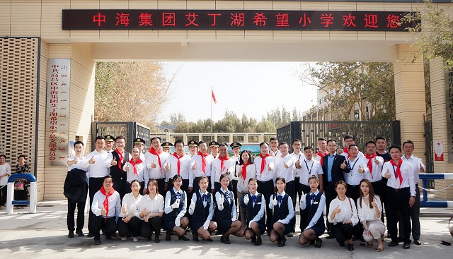 活(huo)動(動)開(開)始(shi)前(qian),中(zhong)海(hai)集(ji)團(團)艾(ai)丁(ding)湖(hu)希(xi)望(wang)小(xiao)學(學)的(de)老(lao)師(師)帶(帶)領(領)各(ge)位(wei)嘉(jia)賓(賓)參(參)觀(觀)了(le)校(xiao)園(園)文(wen)化(hua)展(zhan)示(shi)區(區),講(講)解(jie)希(xi)望(wang)小(xiao)學(學)的(de)教(jiao)育(yu)教(jiao)學(學)情(qing)況(況),介(jie)紹(紹)吐(tu)魯(魯)番(fan)首(shou)創(創)萬(萬)名(ming)教(jiao)師(師)“住家式家訪”的工作成果。中海集團的工作人員介紹了公司的發展歷程與經營業績。