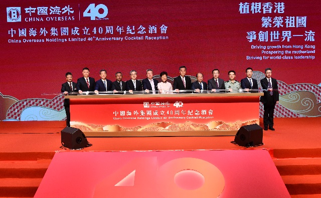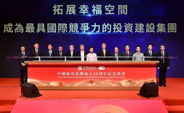 2019年6月6日,中國海外集團於香港會議展覽中心舉行以“植根香港,繁榮祖國,爭創世界一流”為主題的成立40周年紀念酒會,邀請逾600名香港政商界名人、合作夥伴等共襄盛舉,展現公司建設香港、繁榮祖國的歷程和感恩香港、感恩時代的情懷。