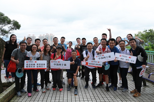 2019年6月2日,中海集團聯誼總會在香港舉行主題為“篤行四十載,齊心築未來”的登高健行活動,旨在促進公司員工內部交流,營造積極和諧的工作氛圍,紀念中海成立40周年。中海集團副董事長、總經理顏建國,助理總經理馬福軍,以及總部部門、各二級單位領導及員工共計80餘人參加活動。
