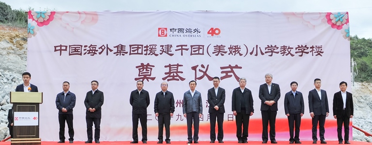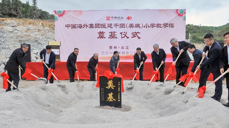 4月2日,中國海外美娥希望小學奠基儀式在貴州省從江縣貫洞鎮美娥易地扶貧移民安置區舉行。澳門特區政府社會文化司司長譚俊榮、澳門中聯辦副主任姚堅、貴州省人民政府副省長吳強、國務院扶貧辦社會扶貧司司長曲天軍、澳門中企協會會長傅建國、黔東南自治州書記桑維亮、中國建築國際行政總裁張海鵬、中建澳門董事總經理張傑出席奠基儀式。桑維亮書記、張海鵬總裁分別代表當地政府、援建中資企業致辭。
