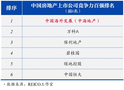 2017年7月23日,《21世紀經濟報導》在海南三亞舉辦的博鼇21世紀房地產論壇第17屆年會上,REICO工作室發佈了中國房地產上市公司競爭力百強榜單。中海地產憑藉其在土地、資金、人才方麵的雄厚實力以及行業領先的投融資能力、風險管控能力,榮登中國房地產上市公司競爭力百強第一名。
