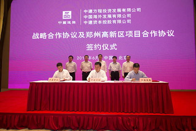 2017年6月21日下午,經過近期的緊密溝通與推動,在中建總公司的大力支持下,中國海外發展有限公司(以下簡稱“中國海外發展”)分別與中建方程投資發展有限公司(以下簡稱“中建方程”)、中建資本控股有限公司(以下簡稱“中建資本”)在(zai)北(bei)京(jing)中(zhong)建(jian)雁(yan)棲(棲)湖(hu)景(jing)酒(jiu)店(dian)簽(簽)署(shu)了(le)戰(戰)略(lve)合(he)作(zuo)協(協)定(ding),三(san)方(fang)還(還)就(jiu)鄭(鄭)州(zhou)高(gao)新(xin)區(區)項(項)目(mu)簽(簽)署(shu)了(le)合(he)作(zuo)協(協)定(ding)。中(zhong)國(國)建(jian)築(築)工(gong)程(cheng)總(總)公(gong)司(si)總(總)經(經)理(li),中(zhong)國(國)建(jian)築(築)股(gu)份(fen)有(you)限(xian)公(gong)司(si)總(總)經(經)理(li)王(wang)祥(xiang)明(ming),中(zhong)建(jian)總(總)公(gong)司(si)副(fu)總(總)經(經)理(li),中(zhong)建(jian)股(gu)份(fen)副(fu)總(總)裁(cai)趙(趙)曉(曉)江(jiang),中(zhong)建(jian)總(總)公(gong)司(si)副(fu)總(總)經(經)理(li),中(zhong)建(jian)股(gu)份(fen)副(fu)總(總)裁(cai)鄭(鄭)學(學)選(選),中(zhong)建(jian)股(gu)份(fen)副(fu)總(總)裁(cai)李(li)百(bai)安(an),中(zhong)建(jian)股(gu)份(fen)助(zhu)理(li)總(總)經(經)理(li)郜(gao)烈(lie)陽(陽)出(chu)席(xi)並(並)見(見)證(證)簽(簽)約(約)儀(儀)式(shi)。由(you)中(zhong)國(國)建(jian)築(築)股(gu)份(fen)有(you)限(xian)公(gong)司(si)副(fu)總(總)經(經)濟(濟)師(師)、中建方程董事長賀海飛,中國海外發展董事局主席、行政總裁顏建國,中建資本總經理巢剛,共同簽署了合作協定。根據協議,中國海外發展將與中建方程、中建資本進一步加強業務協同,充分發揮在各自業務領域的資源優勢、市場優勢和專業優勢,共謀發展,合作共贏。