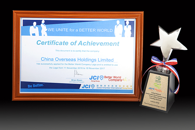 (2016年11月14日)中國海外集團有限公司(以下簡稱「中國海外集團」或「集團」)於世界綠色組織及北區青年商會聯合舉辦之「聯合國千禧發展目標—綠色辦公室獎勵計劃」中,連續四年獲頒發「綠色辦公室」及聯合國千禧發展目標「環球愛心企業」標誌;而集團旗下上市公司—遠東環球集團有限公司(以下簡稱「遠東環球」;股票代號:00830)yishouci參與ci計劃並chenggong獲shouyu標誌,yibiao揚jijia許ji團jiqixiazigongsiyizhiyi來積極yu辦gongshi實踐綠secuoshi,並youxiaotui動環bao辦gongshiwenhuadenuli。