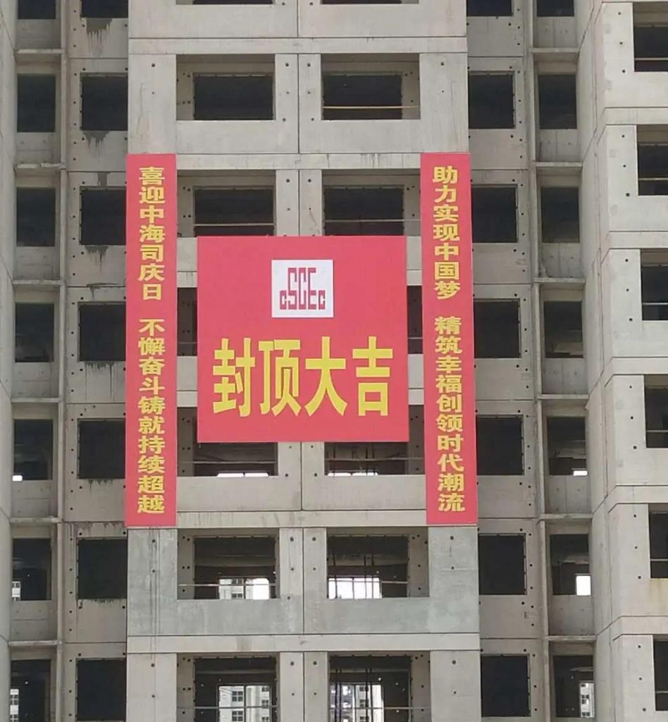 浙江、山東等公司結合近期項目關鍵節點,通過張貼司慶主題的標語橫幅,向中海司慶送上祝福。