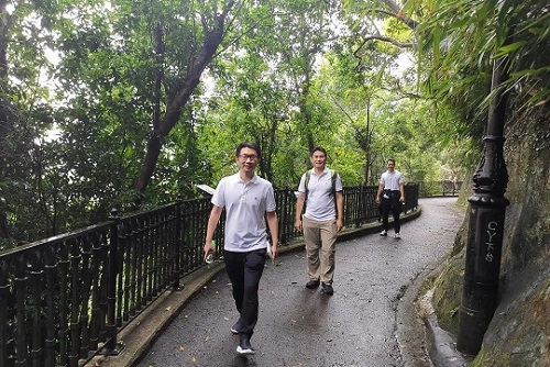 中建澳門公司在澳門鬆山公園組織環山野外定向活動,活動期間突降暴雨,大家毫不畏懼,在雨中完成既定任務,成功到達燈塔廣場。
