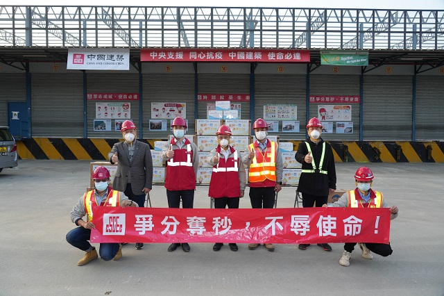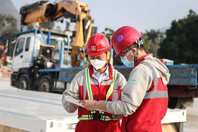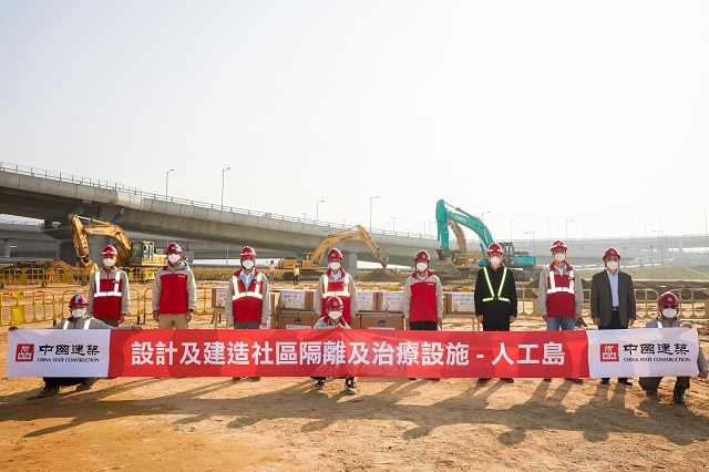 在項目現場,顏建國聽取了各項目負責人關於項目施工進展的匯報,詳細了解項目設計規劃、工期進度、模塊化箱式房安裝,以及疫情防控和安全生產等情況,代表中海集團向一線員工發放專業防護口罩、快速檢測包等抗疫物資,感謝大家前幾天頂風冒雨、夜以繼日的拚搏付出,勉勵大家再接再厲、全力以赴,展現中國速度和鐵軍形象,快速推進項目建設,為奪取香港疫情防控保衞戰的勝利貢獻力量。