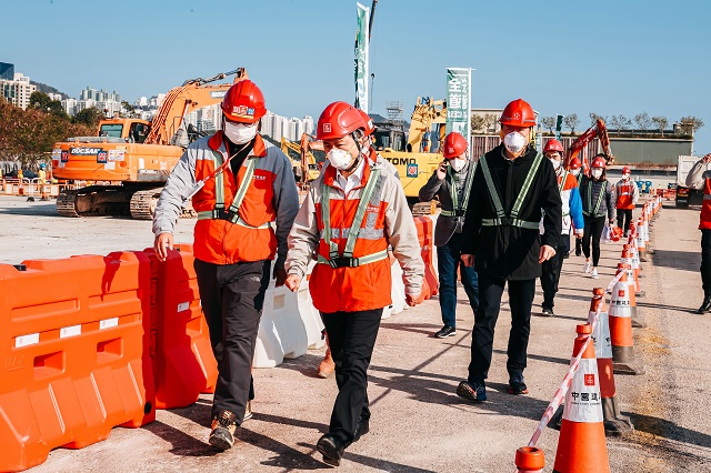 2月25日至26日,中海集團董事長顏建國帶隊赴香港啟德、元朗潭尾、洪水橋、港珠澳大橋香港口岸、qianxintian購wuchenghefen嶺dengliu個內diyuanjianshe區ge離zhi療設shi項mu,視chajian設進du,wei問奮戰zaiyi線de項mujian設zhe。zhonghaiji團fu總經litian濤參jiahuo動。