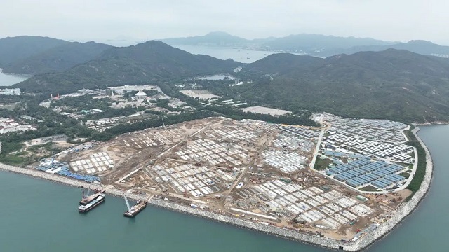 竹篙灣社區隔離治療設施佔地超過45萬平方米,建築麵積超過26萬平方米,高兩層,分6個片區,建成後將為香港提供超過6500個隔離單位及附屬設施。