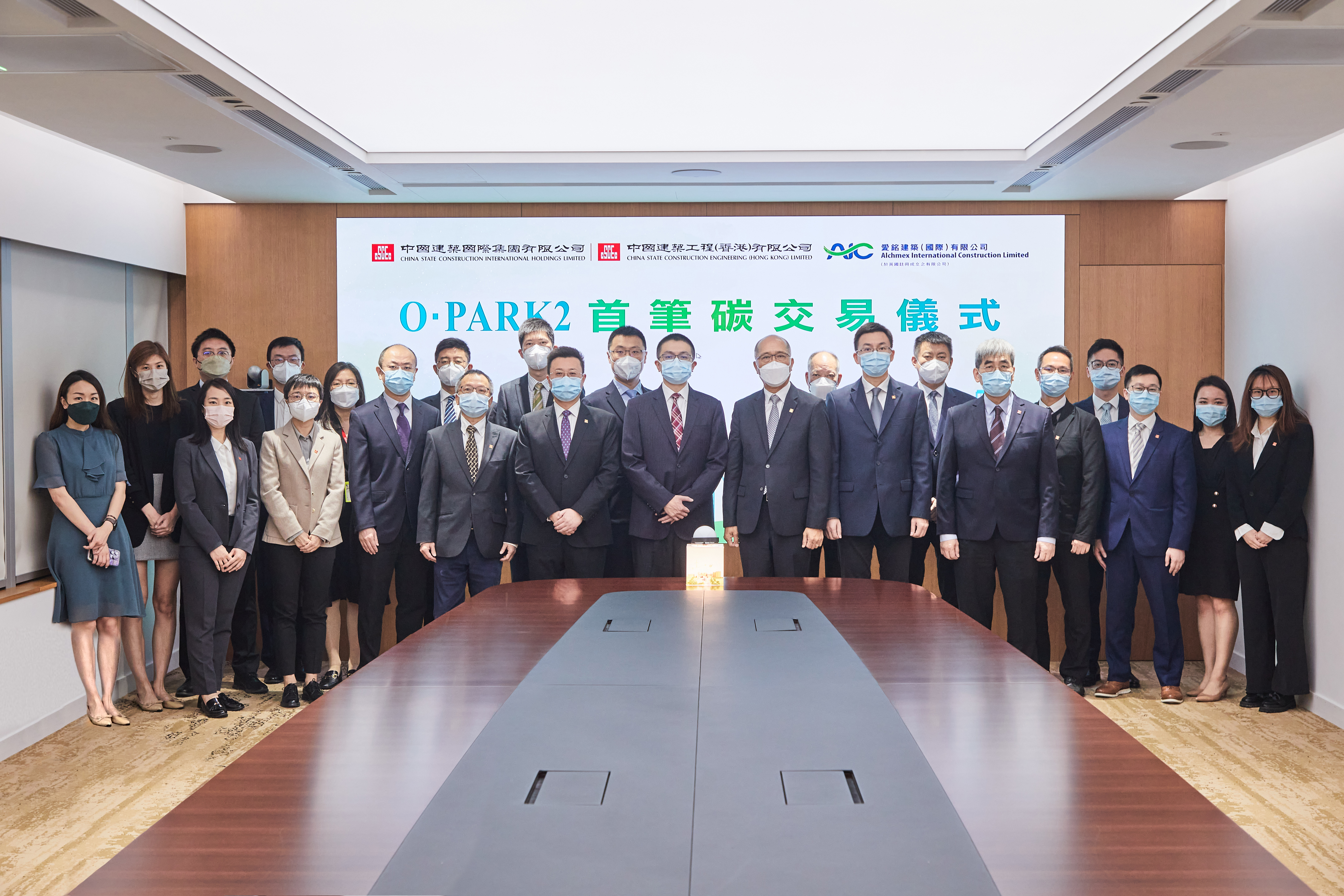 近日,中國海外集團旗下中國建築國際集團有限公司(以下簡稱“中國建築國際”或“公司”)通過香港交易所碳交易市場Core Climate,為旗下項目香港有機資源回收中心第二期(O·PARK2)首次購買碳信用及作碳中和抵消。活動儀式於公司香港辦公室完滿舉行,香港交易所碳市場及ESG產品發展負責人趙健能先生,中國建築國際執行董事、副總裁孔祥兆,助理總裁黃江、張明、劉永成等出席儀式。