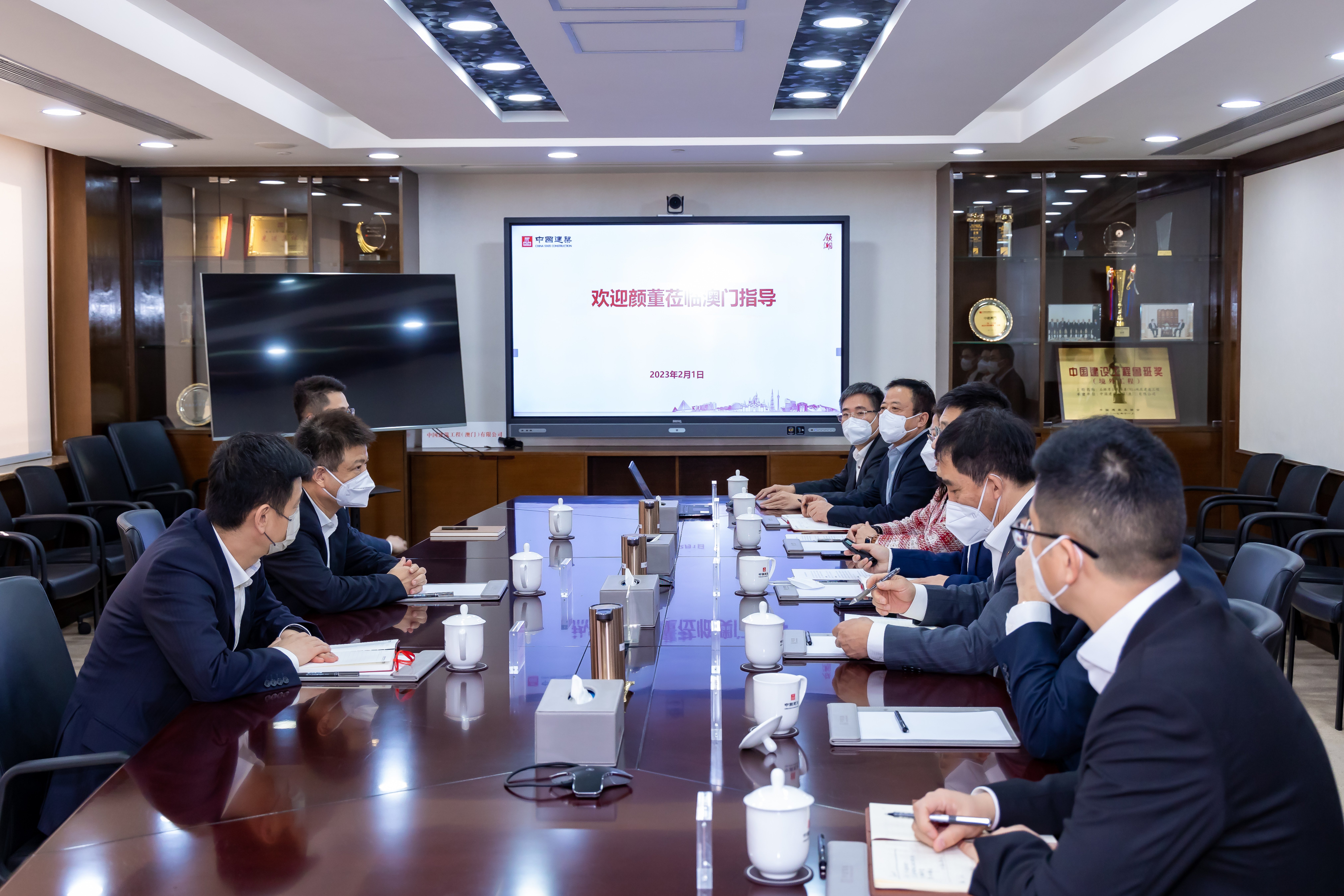 2月1日,中海集團董事長顏建國赴中建澳門公司開展調研慰問。中海集團董事、中國建築國際行政總裁張海鵬參加調研。