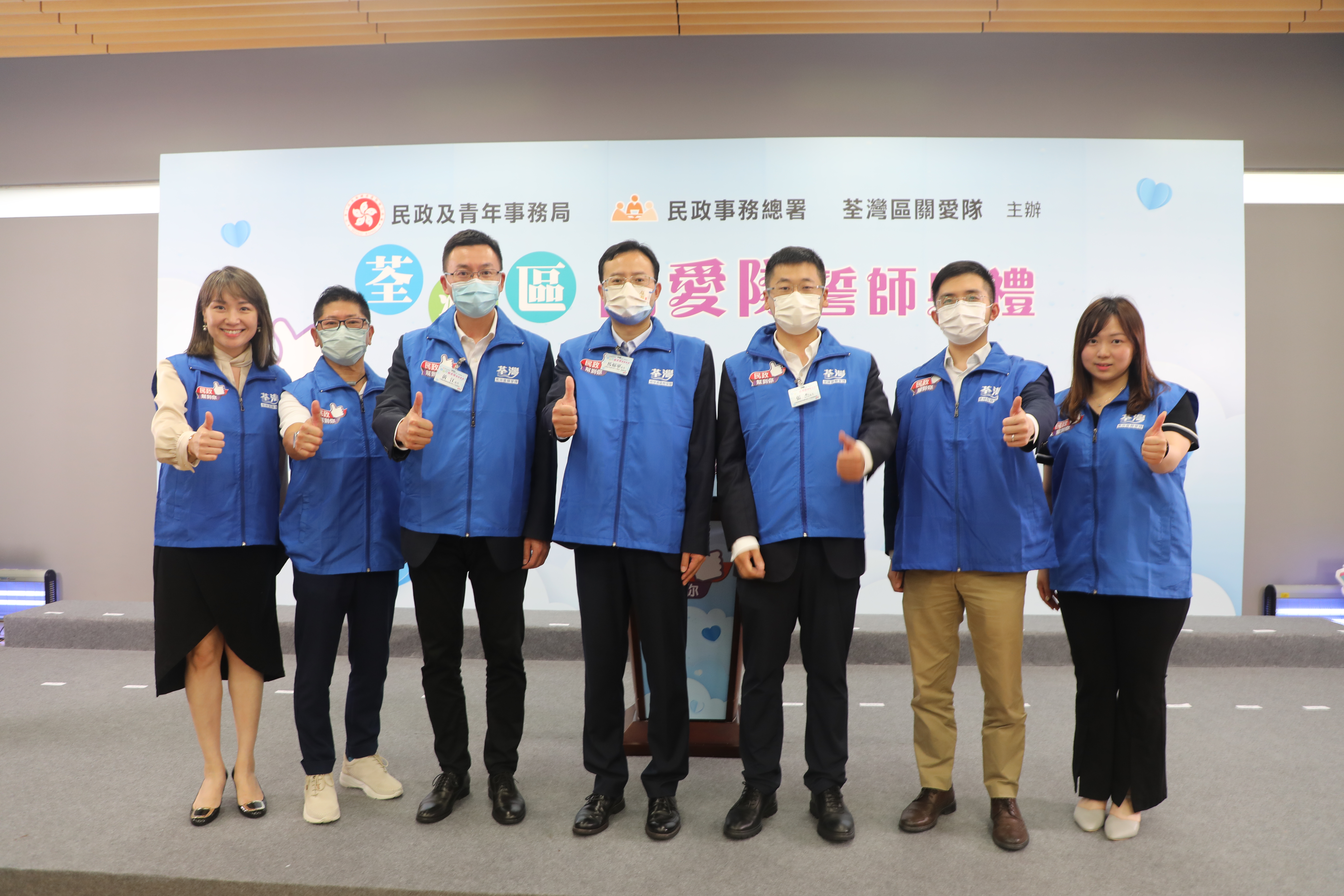 在誓師典禮上,馬福軍﹑張(張)傑(jie)及(ji)黃(黃)江(jiang)作(zuo)為(為)關(關)愛(愛)隊(隊)夥(huo)伴(ban)團(團)體(體)代(dai)表(biao)獲(獲)邀(yao)到(dao)台(tai)上(shang)與(與)政(zheng)府(fu)官(guan)員(員)及(ji)一(yi)眾(眾)嘉(jia)賓(賓)進(進)行(xing)啟(啟)動(動)儀(儀)式(shi),正(zheng)式(shi)宣(xuan)佈(佈)荃(quan)灣(灣)區(區)關(關)愛(愛)隊(隊)投(tou)入(ru)社(she)區(區)服(fu)務(務)。其(qi)後(hou),該(該)區(區)的(de) 19 隊關愛隊輪流到台上合照。