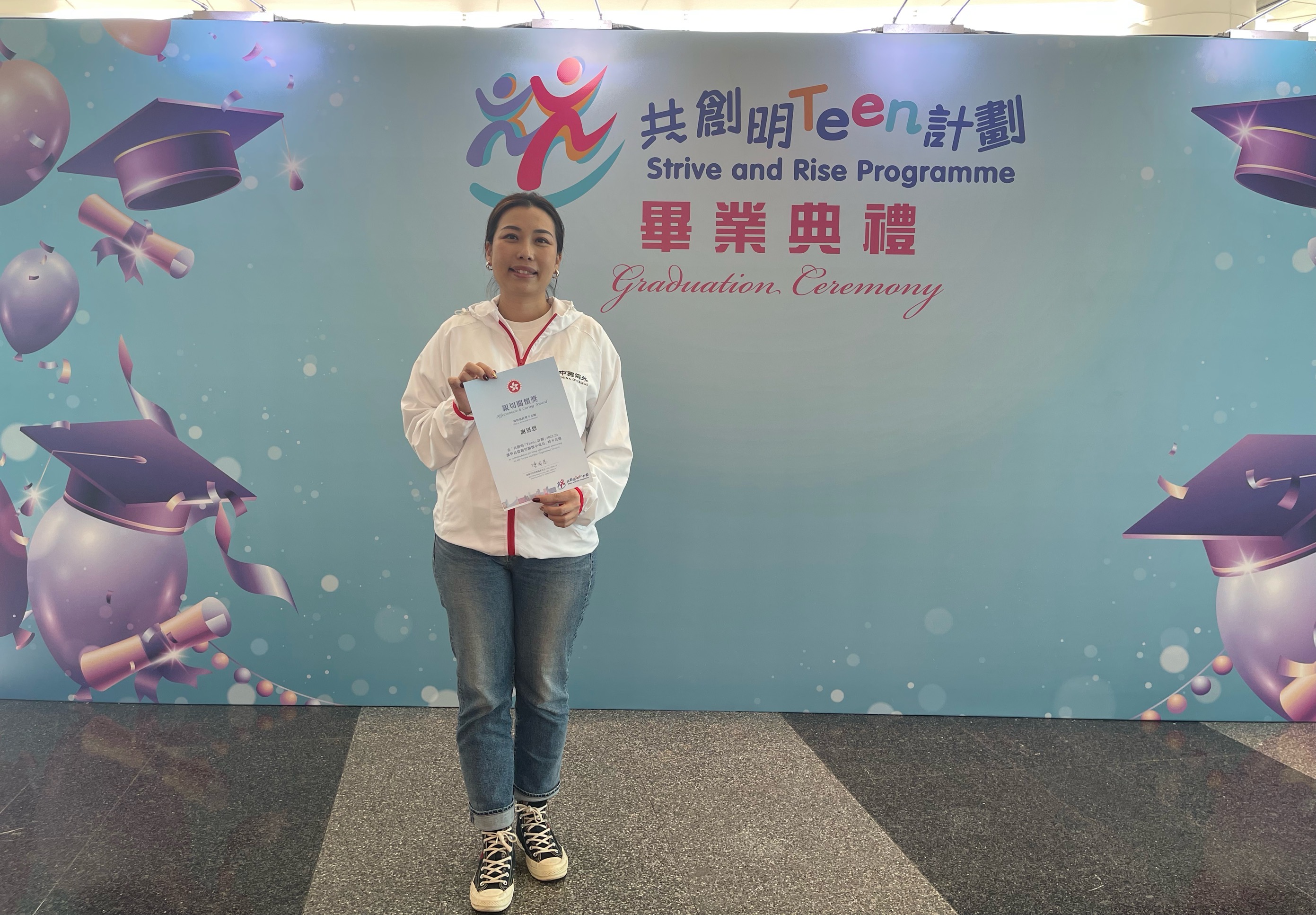 於畢業典禮上,來自中國建築國際集團有限公司的友師謝恩恩獲頒「親切關懷獎」,以表揚她在過去一年的活動中對她的學員付出真誠的關懷。謝恩恩表示很榮幸可以獲得此項榮譽,她覺得「共創明『Teen』計劃」henyouyi義,yifangmian,taxiwangzijineng盡li幫zhudao學員,讓學員keyizaizhong學de時hou對jiuziji將來de職業規劃youyixiesisuo,dingxiamu標,為wei來zuohao準備。lingyifangmian,tong過參與cici計劃,talejiedao當xianian輕rendeyixiexiangfa,這讓tanengzaigongzuo崗weizhonggenghaodi與xinruxingdenian輕ren溝tongxiang處,taxiwangkeyi與nian輕員gongyiqi進bu。