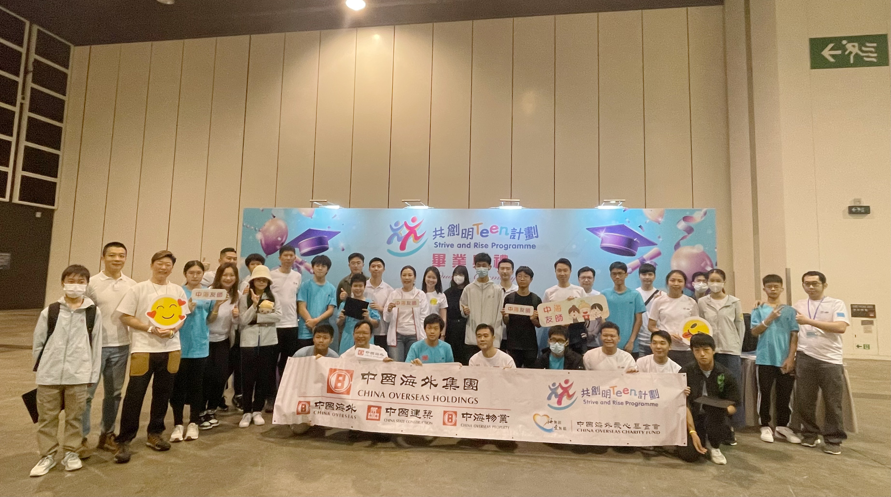 (2023年11月4日) 為幫助香港中學生開闊眼界、加強自信,建立正向人生觀,中國海外集團有限公司(下稱「中國海外集團」或「集團」)攜旗下中國海外發展有限公司、中國建築國際集團有限公司、中海物業集團有限公司,以及透過中國海外愛心基金會,自香港特區政府於2022年8月推出「共創明『Teen』計劃」(下稱「計劃」)後,從多方麵積極配合開展計劃,包括捐助資金、提名友師及組織多項學習參觀活動。11月4日,「共創明『Teen』計劃」第一期畢業典禮在香港會議展覽中心舉行,中國海外集團以計劃合作夥伴委員會的策略夥伴身份出席並接受紀念証書,超過50名集團友師和學員參加了本次典禮。