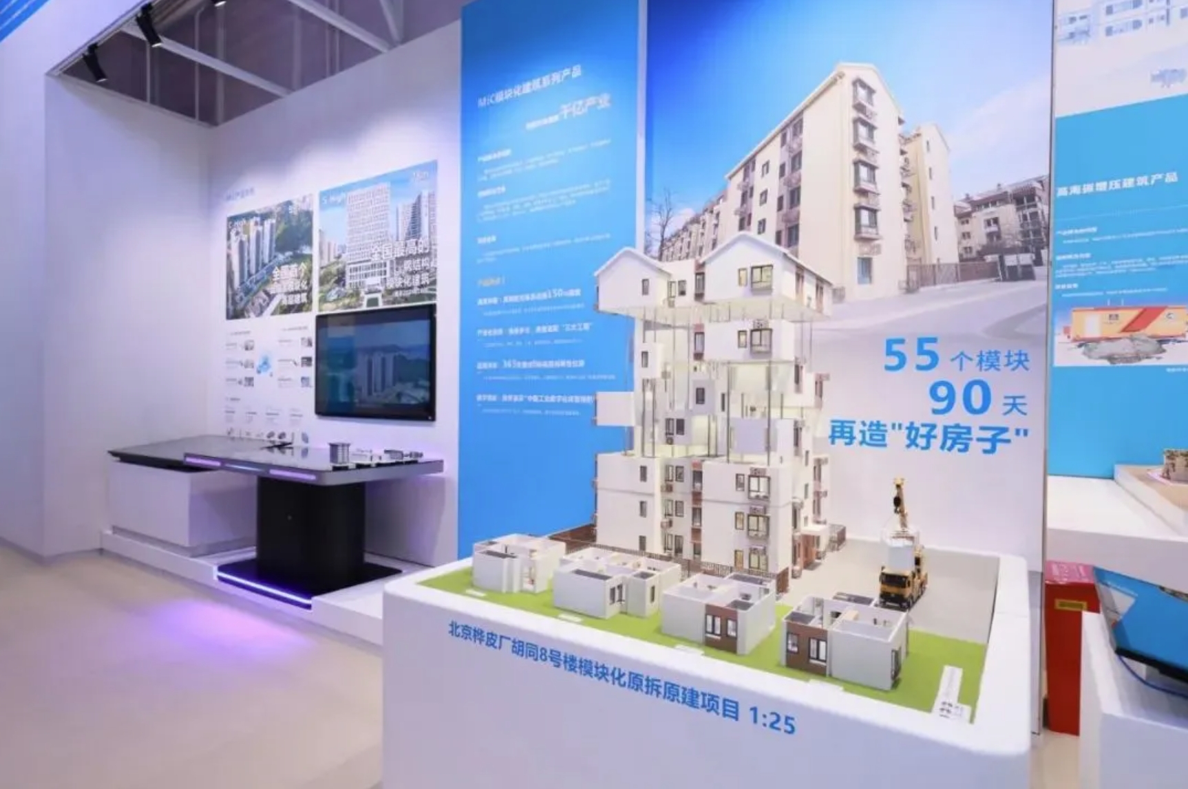走進“拓展幸福空間”主題區,中建四局科創大廈、中建濱湖設計總部、中海金融中心等綠色低碳建築模型,以及超高性能混凝土(UHPC)材料、機製砂高延性混凝土材料、碳纖維複合材料等新型建材依次展出。新建“好房子”樣板間引人駐足,20大科技係統打造的“高性能”+“好體驗”綜合解決方案,讓參觀者沉浸式感受科技進步帶來的生活變革;不遠處,一段影片還原了樺皮廠胡同8號樓3個月從“老破小”蝶變“好房子”的全過程。舊改“好房子”樣板間內,展示著中國建築“診、拆、改、防、提”舊改五字訣,以及MiC模塊化建築、GS-Building鋼結構裝配式產品、地基基礎病害診治技術設備等一攬子中建方案。中國建築以“拓展幸福空間”為企業使命,向人民群眾交付一座座安全耐久、綠色低碳、健康舒適、智慧便捷的“好房子”。