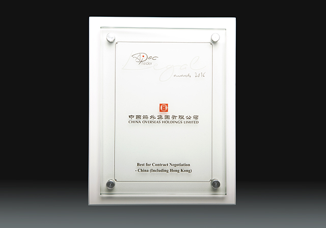 9月29日,中國海外集團基於在合約談判方麵的優異表現獲得《APAC Insider》頒發的APAC Insider Legal Awards 2016“最佳合約談判-中國區(含香港)”獎,對集團在法律管理工作方麵取得的成績給予肯定。這是集團繼2015年首次獲獎後再次獲此殊榮。