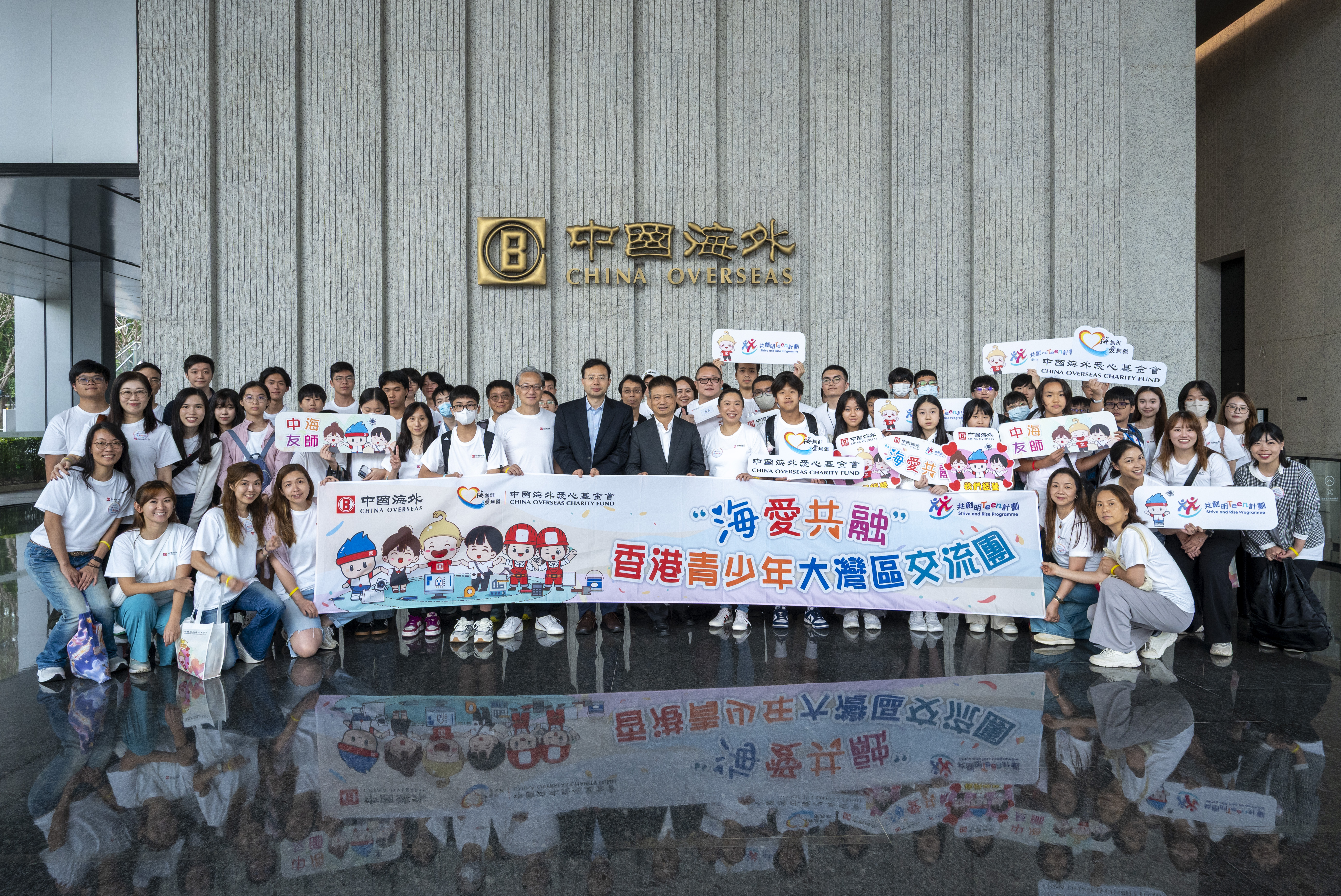 中海集團連續第三年參與香港政府籌劃的「共創明『TEEN』計劃」,以支持香港的繁榮未來。我們舉辦了一係列的活動,包括「海愛共融」香港青少年大灣區交流團活動,參觀集團旗下工作地點、承建或管理的公共設施項目:有機資源回收中心第二期、將軍澳海水化淡廠、中建香港智慧工地研發中心、沙田汙水處理廠往岩洞工程、元朗防洪壩及明渠改善計劃、昂船洲軍營解放軍駐港部隊展覽中心、展城館、樓宇復修資源中心、啓德郵輪碼頭等項目。