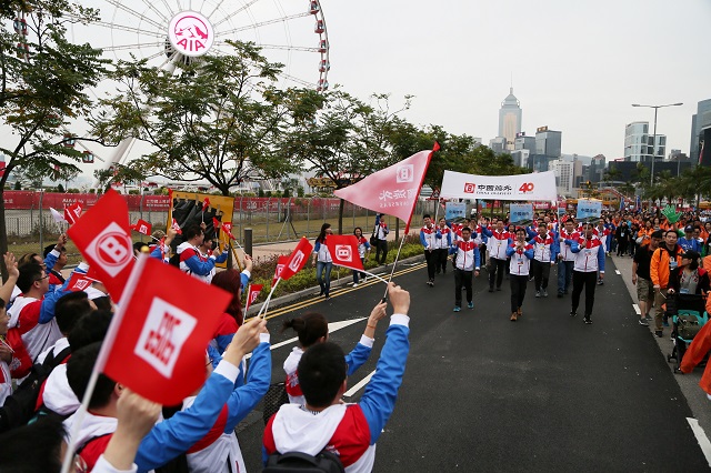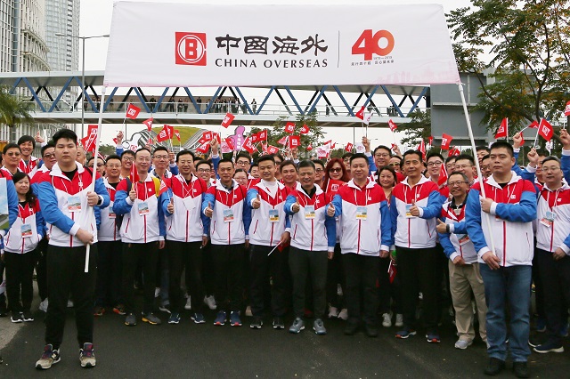 適逢中海集團今年成立40周年,同事們身穿印有「China Overseas 40周年」字樣的新版中海製服。在中海集團董事長周勇,副董事長、總經理顏建國,常務董事、財務總監陳曉峰,中國建築國際執行董事、行政總裁張海鵬,中海集團助理總經理劉為民、助理總經理馬福軍等領導的帶領下,由中環愛丁堡廣場出發,經過中環及灣仔繞道,行至終點北角油街,全程長約5.3公裏。今日天氣溫暖和煦,同事們精神抖擻、意氣風發,展現出集團積極履行企業社會責任的風貌。