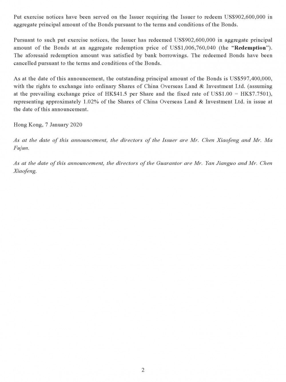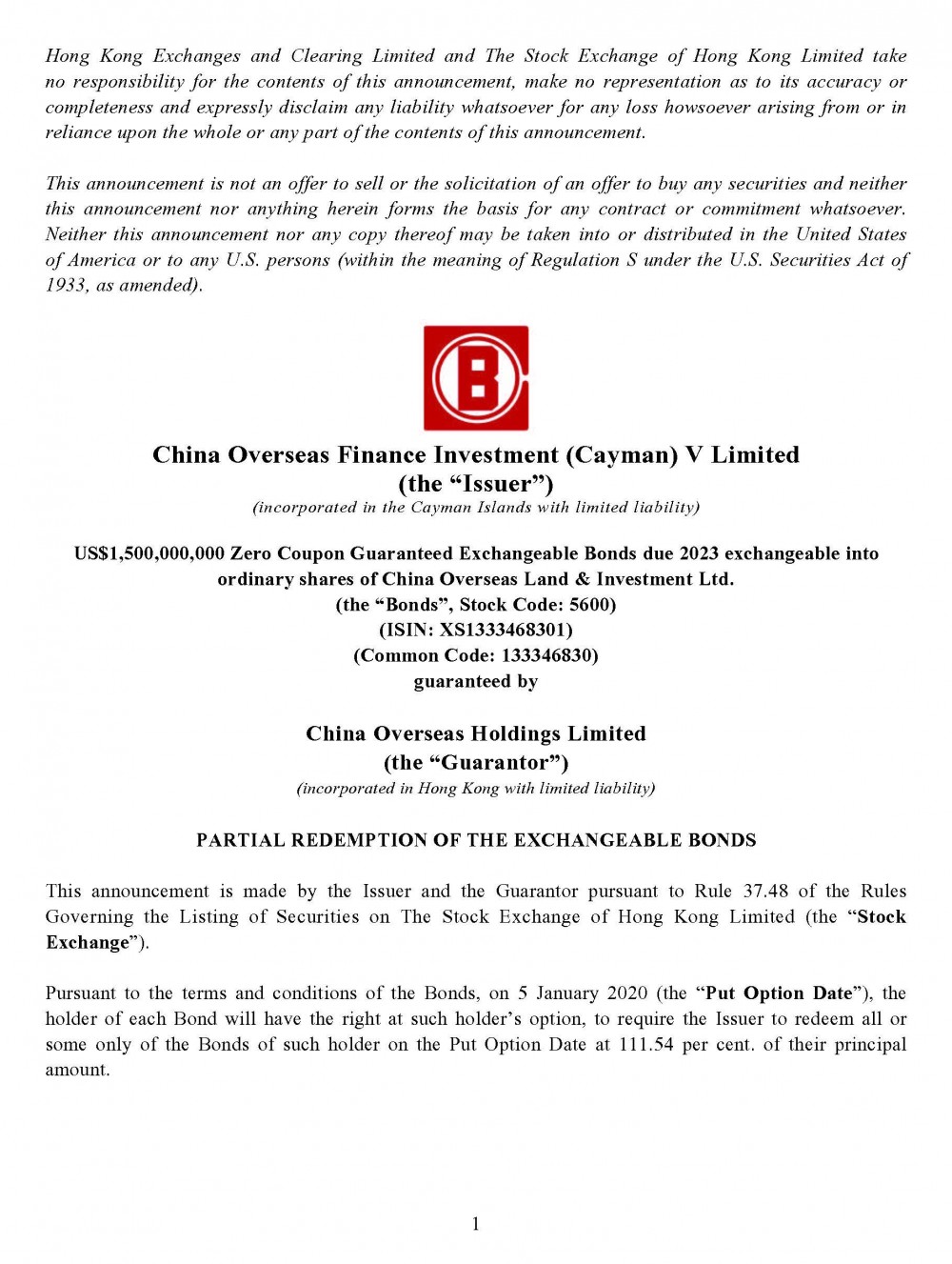 PARTIAL REDEMPTION OF THE EXCHANGEABLE BONDS ANNOUNCEMENT