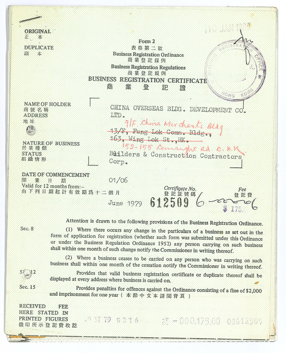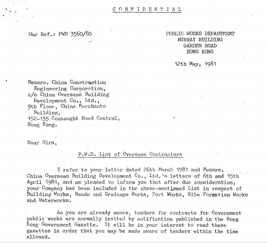 1981年5月,成功在香港申請五項最高C級施工牌照,可承接不限標額的各類工程