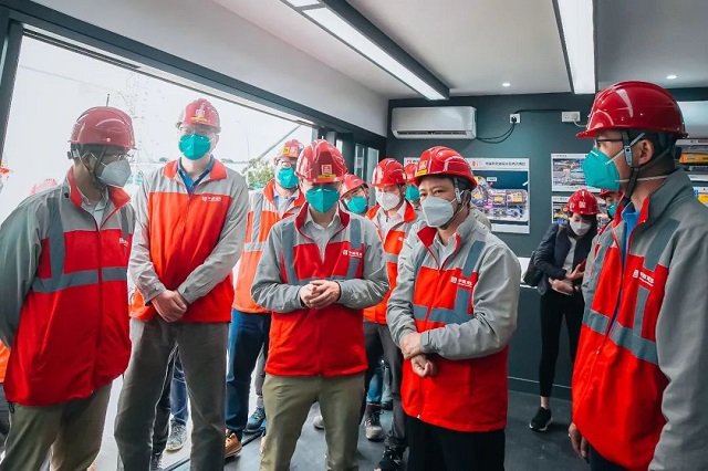 在項目現場,顏建國認真聽取了項目建設情況匯報,詳細了解工程進度鋪排、MiC箱體倉儲運輸及安裝、員工防疫等工作的具體情況,參觀了現場樣板房及C-Smart智慧工地指揮中心。顏建國對一個多月以來,項目團隊勇擔使命、知難而行、頂風冒雨推進項目建設表示感謝,對項目取得的進展表示充分肯定。