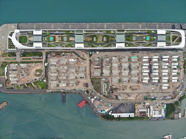 竹篙灣社區隔離治療設施佔地超過45萬平方米,建築麵積超過26萬平方米,高兩層,分6個片區,建成後將為香港提供超過6500個隔離單位及附屬設施。