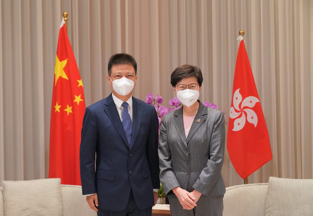 6月23日,中海集團董事長顏建國拜會香港特區行政長官林鄭月娥。中國建築國際執行董事、副總裁孔祥兆參加會見。