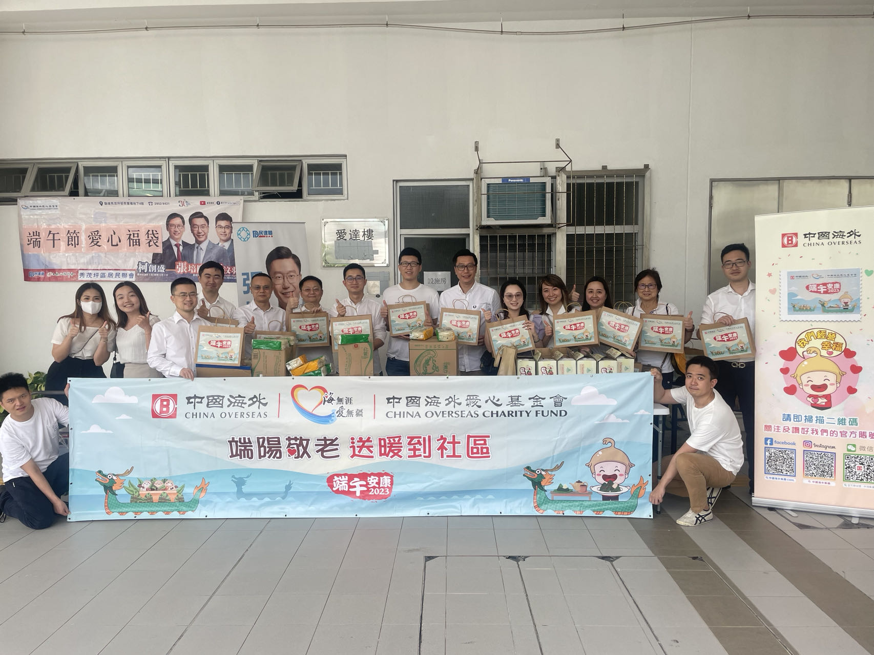 (2023 年 6 月 20 日) 端午節將至,中國海外集團有限公司(下稱「中國海外集團」或「集團」)聯同中國海外愛心基金會舉辦「端陽敬老 送暖到社區」活動,連日來走訪深水埗區、荃灣區及觀塘區向合共 2000 名基層長者派發愛心粽及食品包,為他們送上節日祝福。中國海外集團副總經理、中國海外愛心基金會董事馬福軍,立法會議員、中國海外愛心基金會董事陳凱欣、立法會議員陳恒鑌及觀塘區議員張培剛,以及近 50 名中國海外集團義工出席參與活動。