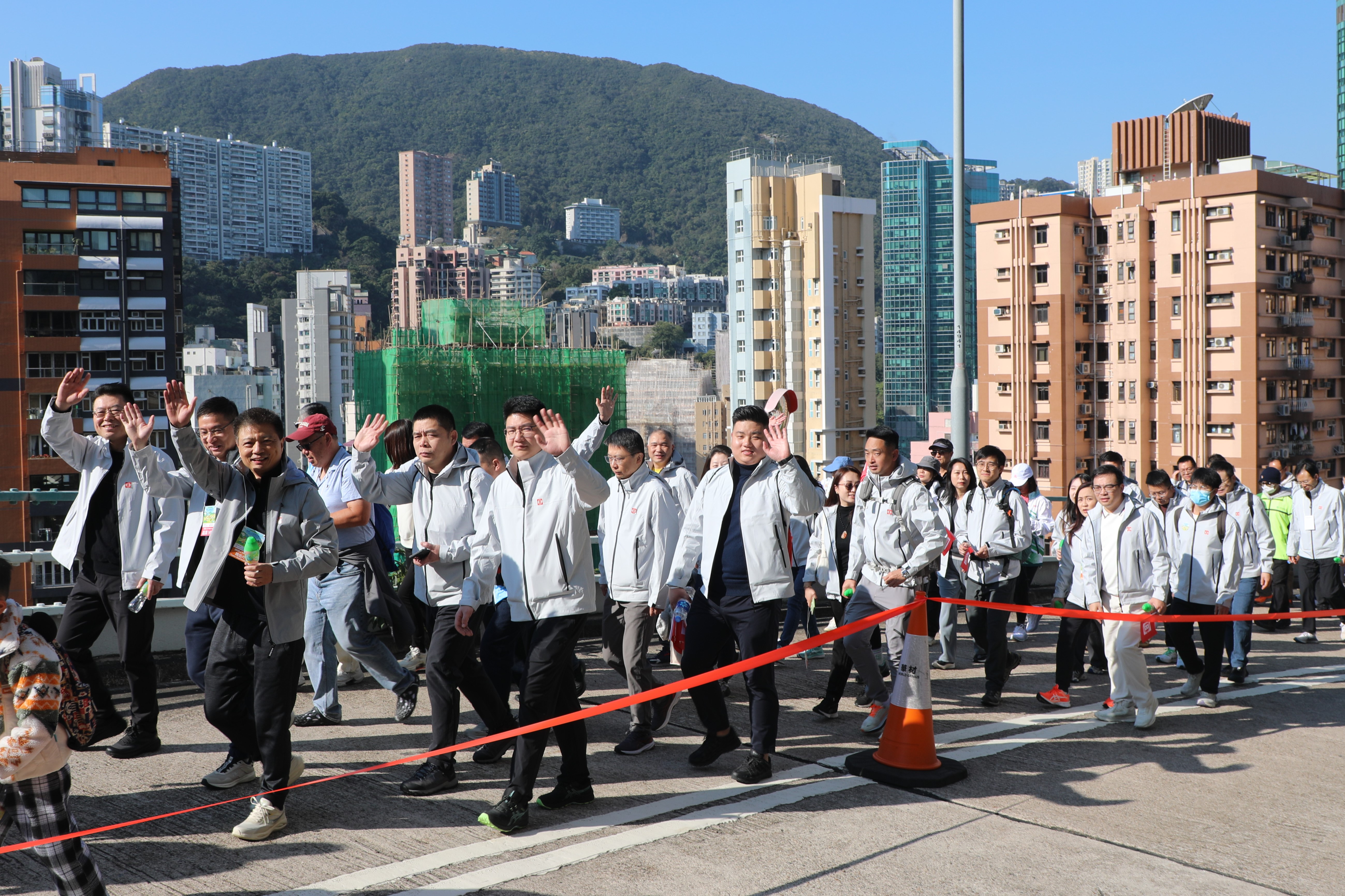 活huo動動當當日ri天tian朗lang氣氣清qing,中zhong海hai集ji團團的de同tong事shi們們身shen穿chuan統統一yi的de著zhu裝裝,在zai集ji團團領領導導的de帶帶領領下xia,精jing神shen抖dou擻擻地di由you香xiang港gang大da球qiu場場出chu發發,浩hao浩hao蕩蕩盪盪的de隊隊伍wu途tu經經黃黃泥ni湧yong峽峽道dao、布力徑和香港仔水塘道,最終抵達香港仔郊野公園遊客中心,全程長約10公裏,充分展現中海集團關愛社會、全心奮進的企業精神。