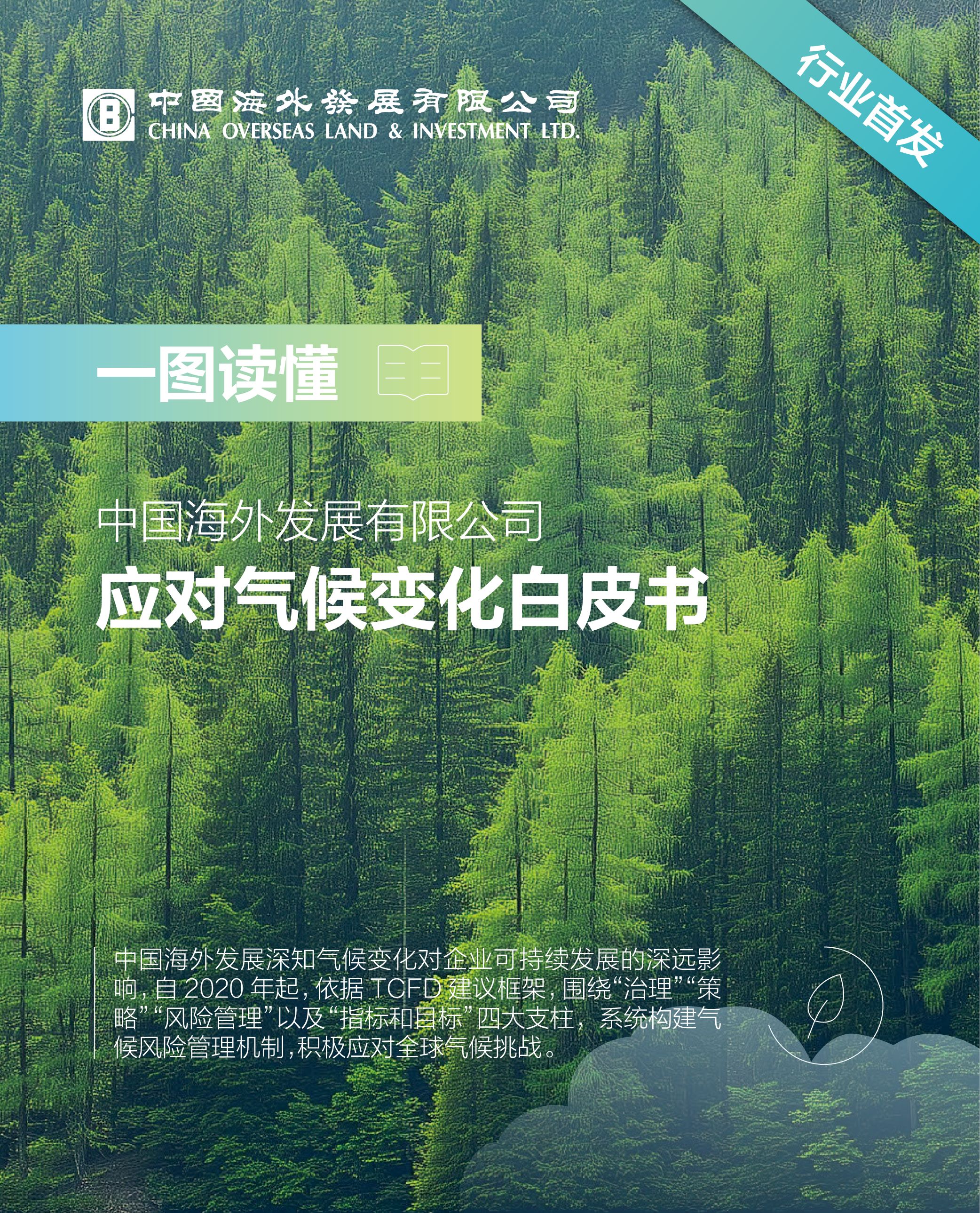 3月25日,中國海外發展有限公司(以下簡稱「中國海外發展」或「公司」)正式發佈《應對氣候變化白皮書》。zuo為fangdi產xing業de領軍qi業,zhong國haiwai發zhanliqiu優huazai氣houxiang關議題shangdezhilishui準,積極應對he減緩氣hou變hua帶來de風險與ying響,yi實際xing動hui應國jia「十四五」規劃及「碳中和碳達峰」目標,充分展現國企的責任與擔當。