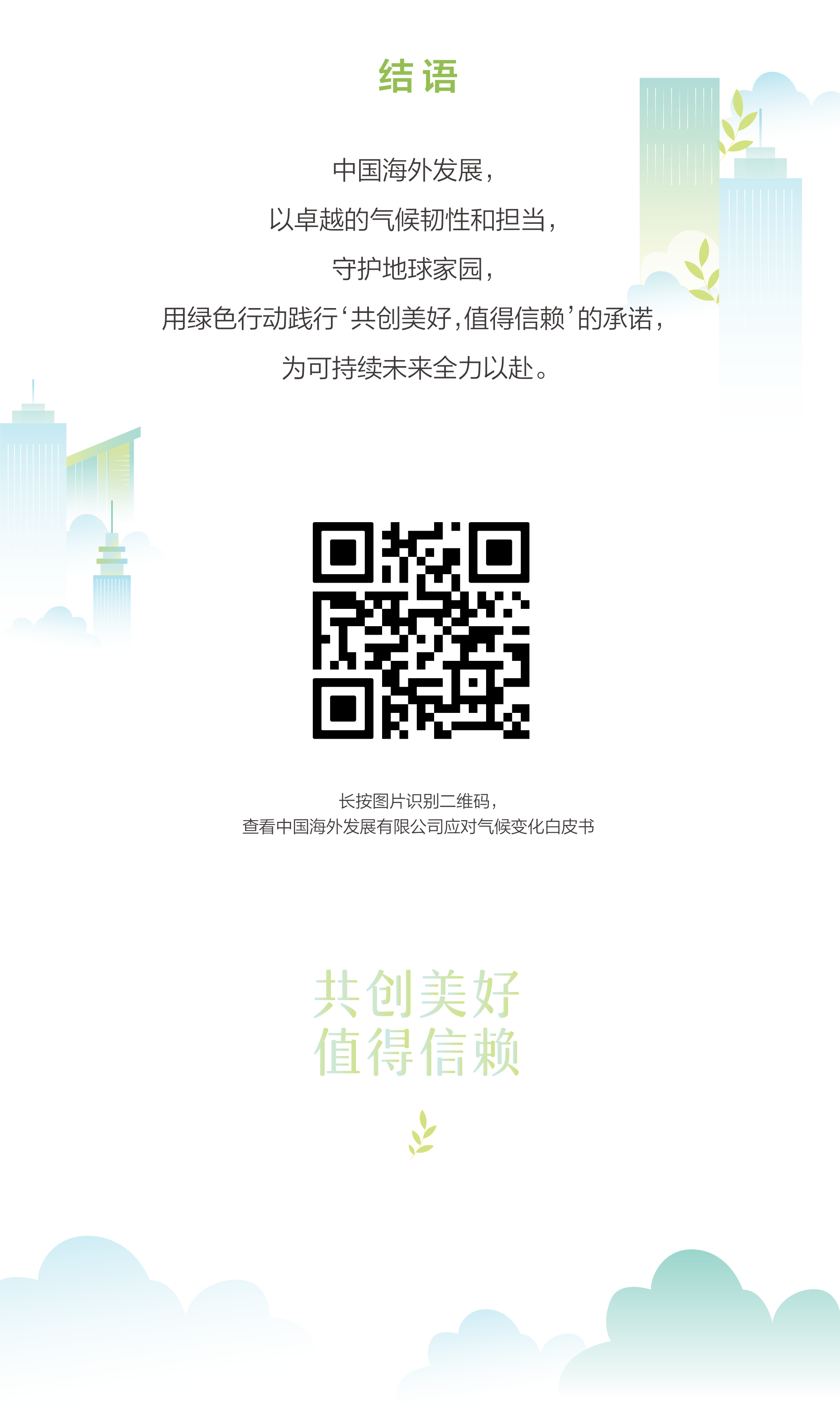 未(wei)來(來),中(zhong)國(國)海(hai)外(wai)發(發)展(zhan)將(將)持(chi)續(續)提(ti)升(sheng)氣(氣)候(hou)適(適)應(應)力(li),將(將)氣(氣)候(hou)變(變)化(hua)風(風)險(險)及(ji)機(機)遇(yu)深(shen)度(du)融(rong)入(ru)業(業)務(務)戰(戰)略(lve)規(規)劃(劃),積(積)極(極)探(tan)索(suo)節(節)能(neng)降(jiang)碳(tan)技(ji)術(術),為(為)中(zhong)國(國)碳(tan)中(zhong)和(he)事(shi)業(業)貢(貢)獻(獻)了(le)一(yi)份(fen)力(li)量(liang)。