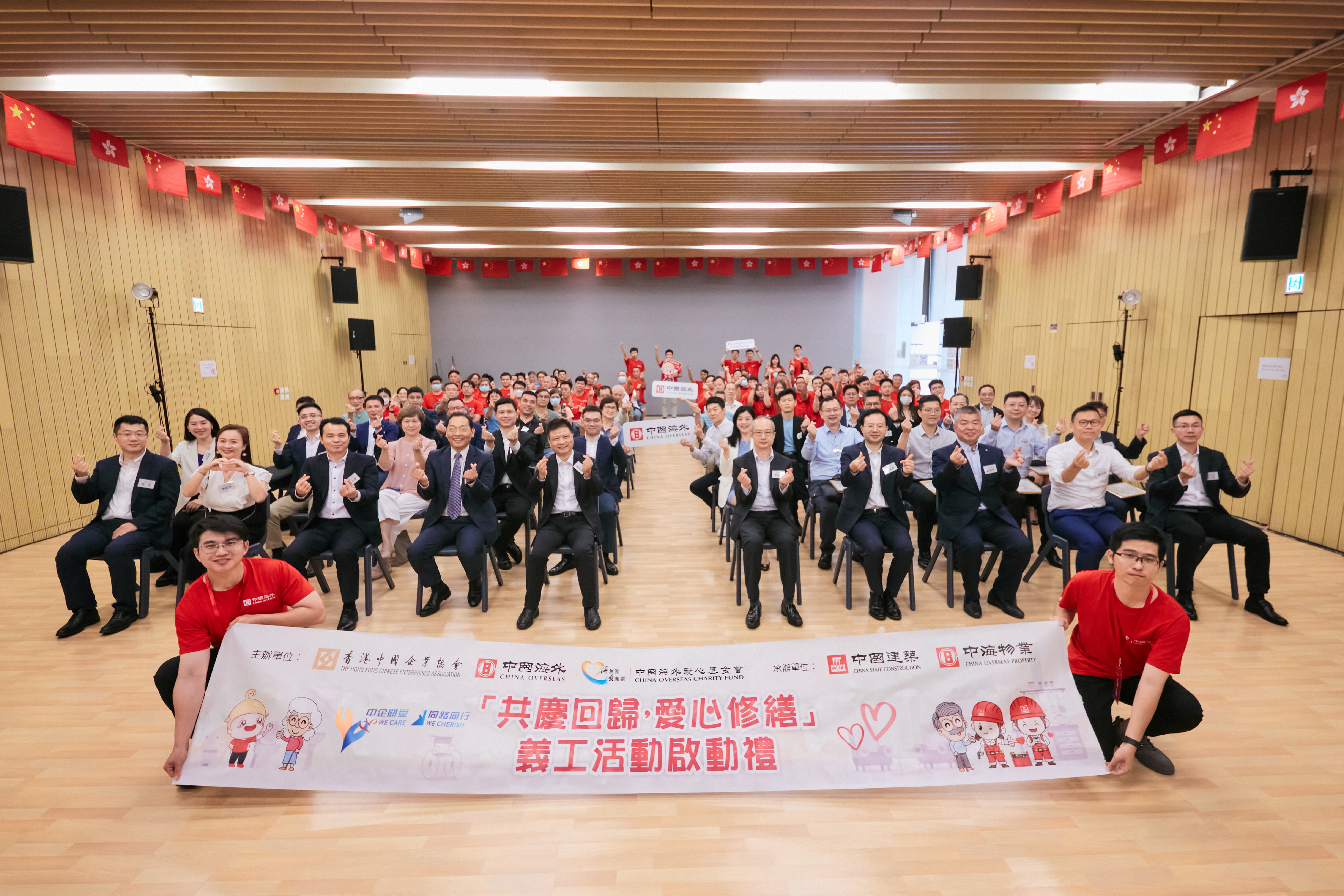 中國海外集團及旗下上市公司發揮公司專業優勢,開展萬戶家庭房屋修繕活動,助力改善香港「住房問題」,成為香港中國企業協會「中企關愛、同路同行」九項活動之一,切實提升香港基層市民幸福指數,得到社會各界高度讚譽。服務的對象主要是在深水埗、觀塘、離島、元朗、沙田、北區、屯門、荃灣等獨居長者及基層家庭,提供安裝防滑扶手、檢查水管、清潔下水道、門鎖維修、修補天花及更換電燈電線等各類愛心修繕服務,2024年已服務超過萬戶基層市民。