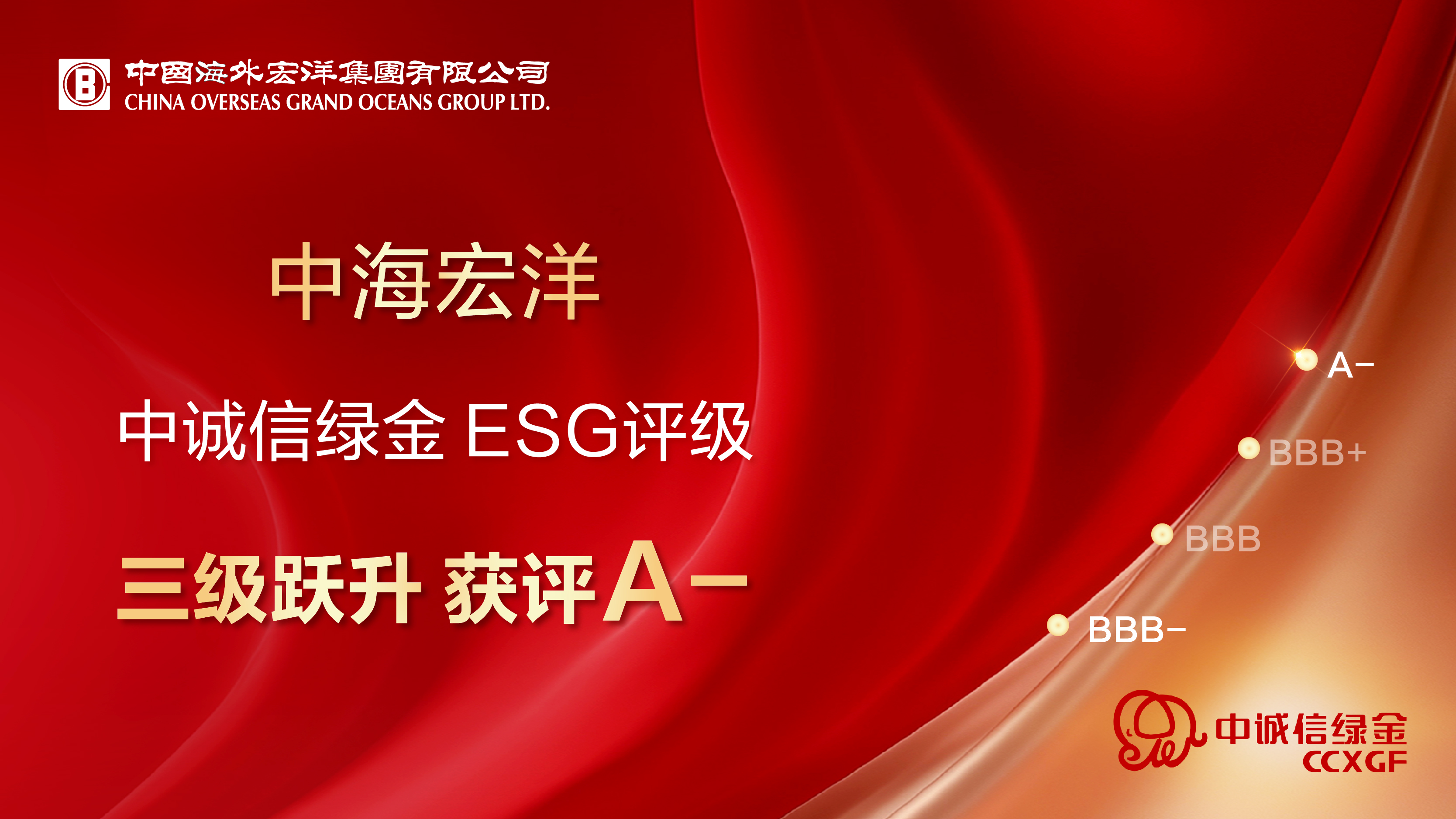 憑借在環境保護、社會責任、企業管治等方麵的全麵深耕,中海宏洋中誠信綠金ESG評級由BBB-實現三級躍升獲評A-,排名行業前5%。中誠信是國內第一,全球第四的評級機構,展業30餘年,專業度及規範性受到監管、發行人、投資者及中介機構等市場參與者的廣泛認可。