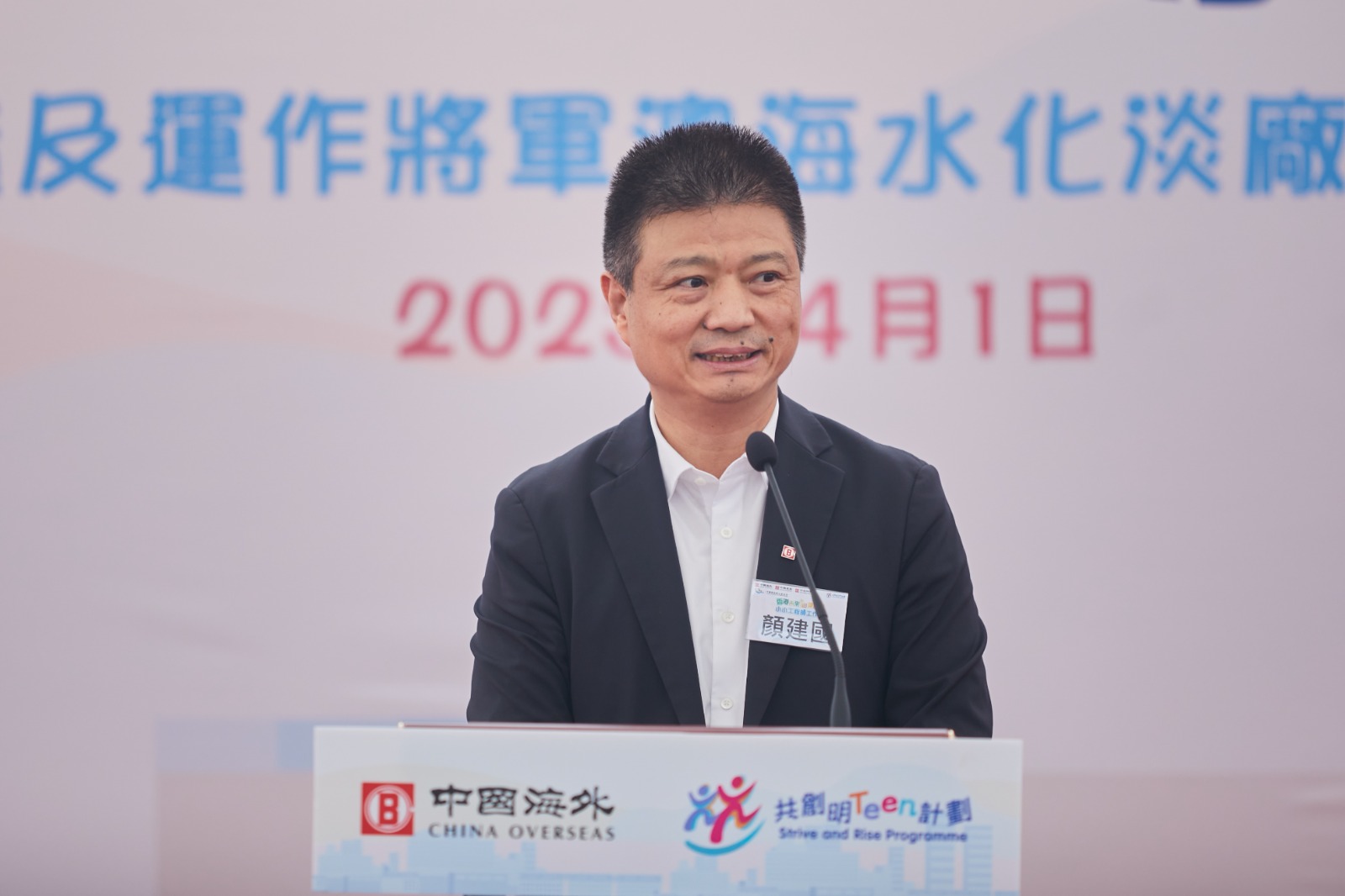 (2023 年 4 月 1 日)中國海外集團有限公司(下稱「中國海外集團」或「集團」)今日(1 日)在旗下在建項目將軍澳海水化淡廠第一階段舉行「香港未來建設者—小小工程師工作坊」係列活動,旨在為參與特區政府「共創明『Teen』計劃」(下稱「計劃)的學員提供「海水化淡」主題分享及安全建造技術展館參觀。香港特別行政區政府政務司司長陳國基、中央人民政府駐香港特別行政區聯絡辦公室經濟部副部長呂峰、香港中國企業協會總裁於曉、香港水務署助理署長彭愛玲、香港立法會議員陳凱欣、中國海外集團董事長﹑總經理顏建國,以及計劃師友共約 100 人出席參與活動。