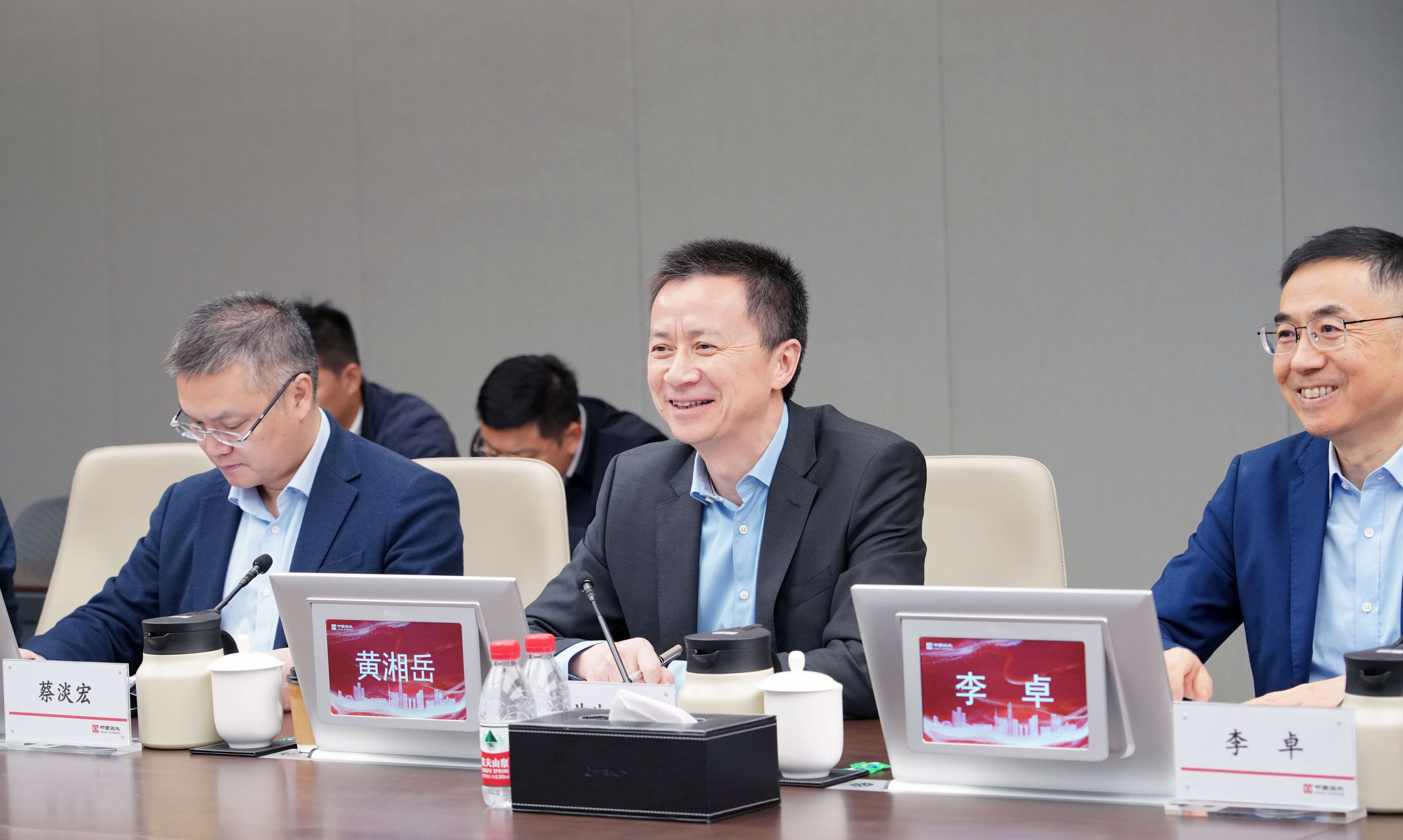 會前,顏建國陪同黃湘嶽一行聽取國內首個5A級近零能耗高層寫字樓——中國海外大廈中海低碳節能平台情況介紹,並參觀企業展廳中海領潮館,詳細了解中海集團的發展曆程及現狀。